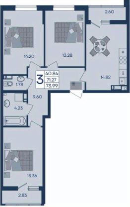 3 комнатная квартира с ремонтом 73.91 м², на 6 этаже в жилом комплексе ''Дом 101''. ЖК Дом 101 - это уникальное пространство на территории 101 га. Парк 20 га с спортивными площадками и амфитеатром. Школа на 1725 мест и пять детских садов. Благоустроенные дворовые территории с детскими площадками и зонами отдыха создают комфортную среду для семей. 1926