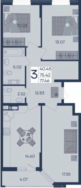 3 комнатная квартира с ремонтом 77.46 м², на 7 этаже в жилом комплексе ''Дом 101''. ЖК Дом 101 - это уникальное пространство на территории 101 га. Парк 20 га с спортивными площадками и амфитеатром. Школа на 1725 мест и пять детских садов. Благоустроенные дворовые территории с детскими площадками и зонами отдыха создают комфортную среду для семей. 3589