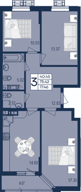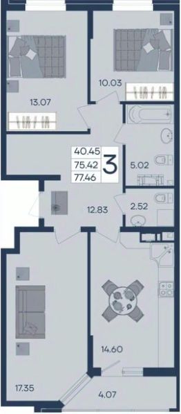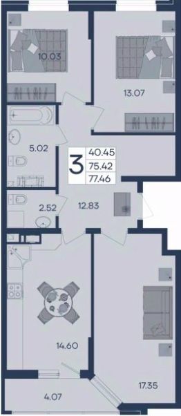 3 комнатная квартира с ремонтом 77.46 м², на 3 этаже в жилом комплексе ''Дом 101''. ЖК Дом 101 - это уникальное пространство на территории 101 га. Парк 20 га с спортивными площадками и амфитеатром. Школа на 1725 мест и пять детских садов. Благоустроенные дворовые территории с детскими площадками и зонами отдыха создают комфортную среду для семей. 3541
