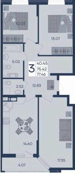 3 комнатная квартира с ремонтом 77.46 м², на 7 этаже в жилом комплексе ''Дом 101''. ЖК Дом 101 - это уникальное пространство на территории 101 га. Парк 20 га с спортивными площадками и амфитеатром. Школа на 1725 мест и пять детских садов. Благоустроенные дворовые территории с детскими площадками и зонами отдыха создают комфортную среду для семей. 428