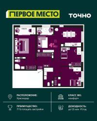 Продаётся 4-комнатная квартира в сданном доме (Дом 1), срок сдачи: I-кв. 2025, общей площадью 122.98 кв.м., на 14 этаже. Краснодар как цент всего края должен быть представлен на высоте для жителей, гостей города и тех, кто только мечтает связать с ним свою жизнь. Настоящей изюминкой предстает сегодня ЖК Сердце Краснодар. Это жилой комплекс премиум класса, в котором слились воедино безграничные возможности и великолепная панорама. В самом центре города, где безустанно кипит жизнь, Ваш дом будет настоящей крепостью. Повышенный уровень комфорта, бесшумная работа оборудования и огороженная территория позволят насладиться видом города извне, оставаясь при этом неотъемлемой его частью. Панорамные окна позволяет любоваться красотами города, а высокие потолки создадут ощущение свободы и роскоши. На этаже дома комплекса располагается не больше пяти квартир. Парадные комфортные и удобные, спроектированы в неоклассическом стиле. Бесшумные лифты ориентированы на перевозку людей и грузов. Квартиры в ЖК Сердце, цены которых гораздо доступнее на этапе строительства, уже находят своих хозяев. Все они пожелали прикоснуться к атмосфере уюта и покоя, находясь в эпицентре столичной жизни. Вы тоже можете стать счастливым обладателем роскошной квартиры в ЖК Сердце Краснодар. Для этого достаточно обратиться в офис компании или оставить онлайн заявку.