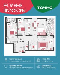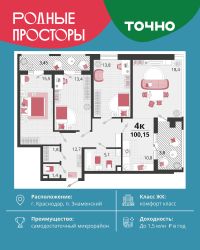 Продаётся 4-комнатная квартира в сданном доме (Дом 33Г), срок сдачи: IV-кв. 2022, общей площадью 114.7 кв.м., на 4 этаже. Development Plaza - мультиформатный проект, где качественная фундаментальная архитектура создает атмосферу успеха и вдохновения. Новый центр жилой и деловой активности. Здесь нужного вам бизнес-партнера гораздо проще встретить в ресторане, чем несколько недель искать его контакты через знакомых - скорее всего, он ваш сосед. Архитектура Фасад из травертина. Выполнен по индивидуальному проекту. Синтез архитектурных стилей привнес в Development Plaza европейскую атмосферу. Эксклюзив Окна в пол, окна в ванной, высокие потолки 3.6 м, студии, келлеры и роскошные 4-комнатные квартиры. Вариативность планировок и деталей - одна из уникальных характеристик Development Plaza. Play-zone спорт йога кинозал гамаки скалодром Свобода от границ Внутренний двор дома расположен на третьем уровне здания. Здесь созданы пространства для отдыха, творчества и впечатлений. Все спроектировано таким образом, чтобы дети росли здоровыми. Нетворкинг Жить в Development Plaza - значит быть частью большой истории, постоянно развивать собственные способности и строить нетворкинг в среде креативного класса и бизнес-элиты. Development Plaza органично сочетает в себе деловую и жилую среду. Достаточно двух минут, чтобы сменить домашнюю атмосферу на яркие ощущения от событий и перспективных знакомств. Премиальные холлы Уникальный авторский дизайн, дорогие натуральные материалы в отделке. Элементы системы умный дом для поддержания комфорта в местах общего пользования. Lounge-зона в каждом подъезде. Стойка консьерж-службы. Колясочные. Помещение для мойки лап питомцам. Квартиры Число квартир - 260. Широкая квартирография - от студий до 4 комнатных квартир евроформата. Высота потолков - 3,6 метра , возможность устройства 2го уровня в одной квартире. Предусмотрены варианты объединения квартир до 180 кв.м. Уникальные видовые характеристики. Квартиры с видом на Чистяковскую рощу, стадион Краснодар, центр города, в квартирах на юго-восточную сторону видно горы в ясную погоду! Квартиры на 3 стороны света! Некоторые квартиры имеют большое видовое окно в ванной комнате. Высокая обеспеченность квартир келлерами- современными европейскими местами для хранения. Большие панорамные окна. Высота окон во всех квартирах - 2,3 м. На трех верхних этажах окна имеют остекление в пол Во всех квартирах остекление из комнат на лоджию полностью в пол, отопительные приборы убраны на стены рядом Дизайн-проект в подарок всем покупателям. Инновации и безопасность В комплексе трехуровневый подземный паркинг на 263 машиноместа с возможностью спуститься к автомобилю на лифте. Система интеллектуального управления при въезде на территорию комплекса обеспечивает доступ в паркинг только для своих. Современные технологии безопасности на основе интегрированной IP-системы позаботятся о спокойствии жителей Development Plaza. В комплексе поэтажный контроль дост