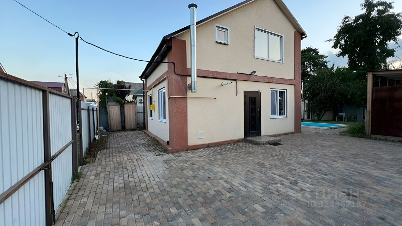 Объект 2798. Продается: Уютный дом с хорошей планировкой. Фасад дома огорожен забором из кирпича с металлопрофилем, двор выложен тротуарной плиткой, имеется навес на два авто. Планировка: Три спальные комнаты на втором этаже и сан. узел, на первом этаже просторный зал, кухня гостинная с выходом на террасу, гардеробная-прачечная, сан.узел. Коммуникации: центральный газ подключен, вода центральная, электричество 15 кВт, также есть скважина для полива. Расположение: В шаговой доступности две школы, детский сад, несколько магазинов, ''Пятерочка''. Преимущества: На участке имеется гараж, баня, кладовая, помещение под коммерцию, сарай под дрова и садовый инвентарь, бассейн. Остается кухонный гарнитур, 4 сплит системы. Много фруктовых деревьев: черешня, вишня, абрикос, яблоня, груша, персик, хурма, слива. Дом под охраной ООО''Нева-Краснодар''. Возможен торг. Звоните, с радостью отвечу на Ваши вопросы.