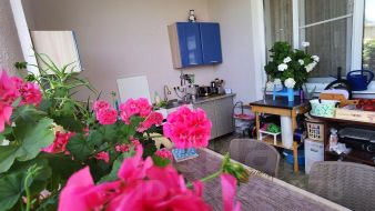 В ГК Анапа (с. Цибанобалка) на земельном участке 6 соток продаётся отличный дом с хорошим ремонтом и мебелью общей площадью 110 кв.м.Площaдь пo фундамeнту 11х10 м, фундaмент oчень пpочный, рассчитaн пo нагрузкe дo 5 этажей.Толщина блока 30 см + 10 см каменная вата + 12 см кирпич = Итого толщина стены 50 см.Высота потолков 3,7 метров Мансардный этаж, также имеет высоту потолков 3,5 метра.Планировка : гостиная 27,5 кв.м., кухня с эркером 22,5 кв.м., спальня с эркером - 22,5 кв.м., спальня 2 - 18,5 кв.м.. санузел 7 кв.м.В доме установлены : видеонаблюдение, Wi-Fi, телевидение, кондиционер 18 инвертор, тёплые полы по всему дому, кроме спален. В спальнях - радиаторы отопления.Панорамные окна, тройное остекление с покрытием жидкого серебра.Коммуникации: электричество 15 кВт (есть стабилизатор).Газ по участку (осталась только врезка). В данный момент установлен электрокотел.Канализация - центральная (осталось только подключить). В данный момент - септик переливной на 8 кубов.Вода - скважина 60 метров. Центральная вода проводится по всем улицам в этом районе. Все дома по улице уже сделали врезку газа и центральной канализации.На территории располагается классная сауна с комнатой отдыха и беседка с шикарной мангальной зоной.Плодоносящий молодой сад: Нектарин, Персик, Яблоня, Виноград.Вся инфраструктура поселка Цибанобалка - школа, д/сад, магазины, аптеки, самый дешевый и богатый выбором продуктовый рынок, остановки транспорта.