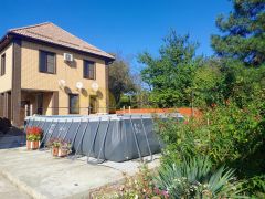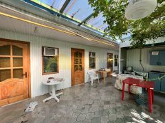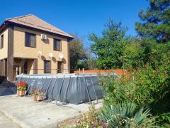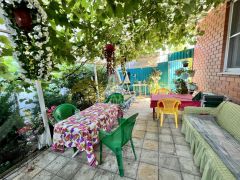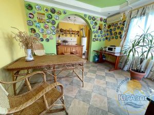 Продается жилой двухэтажный дом 197,5 кв.м. с отдельной территорией и гостевыми домами для отдыхающих.Планировка жилого дома: на первом этаже большой прихожая, сауна сделана из липы, предбанник с душевой кабиной, коридор, кухня-гостиная. С первого этажа есть выход в подвал 70 к.м. сухой с вентиляцией все канализационные выходы проходят по верху, можно в любой момент отремонтировать, заменить запчасти. В подвале 4 помещения полностью отделанные.На второй этаж ведет лестница, выполненная из липы, просторный холл, 4 спальни, в 2 спальнях есть санузел совмещенный, а также есть ванная комната с джакузи.Гостевые дома: 3 кирпичных дома в 2 этажа 46,46,57 кв.м. с террасами всего 9 благоустроенных номеров в каждой комнате кондиционер. В номерах телевизор санузел с душем, к каждому номеру своя территория, кухня. А также на территории есть мангальная зона, беседки, детская площадка, гладильная, прачечная. Вода подключена со скважины к гостевым домам, поэтому очень выгодно, большая экономия на коммунальных платежах. У отдыхающих своя территория и с отдельный выходом на море, перед двором уложена тротуарная плитка, где помещаются 6 машин. До моря 2 минуты пешком, удобный проход к морю. Приятный бонус - Новому владельцу остаётся всё для ведения бизнеса!!! Как правила в сезон все номера заселены, пустых номеров практически не бывает, есть своя наработанная клиентская база.Земельный участок- 14,65 сотки. Участок выходит на две стороны, территория полностью загорожена. Участок ровный, ухоженный. Растут плодовые деревья: яблони, груши, сливы, вишня, абрикосы, инжир 2 вида, миндаль, шелковица, грецкий орех, виноград 15 сортов, ежевика. Теплица с капельным поливом тропинки выложены из тротуарной плитки площадь 46 кв.м. Хозяйственный блок, а также есть гараж с летней кухней 105 кв.м., летний туалет с душем, раковинной и стиральной машинкой, внутри все обложено плиткой.Сделано благоустройство двора бетон, плитка. Широкий фасад. По фасаду забор выполнен из итальянского кирпича, есть два заезда во двор. Перед домом большая территория для бассейна 7,36 х 3,8 м, который останется новым покупателям.Коммуникации: газ, свет, вода, скважина, установлен газовый котел, счетчики, канализация-септик.Поселок с развитой инфраструктурой: школа, круглосуточные магазины, продуктовый рынок, кафе, столовые, аптеки, банкомат сбербанк. До г. ТЕМРЮКА 15 км., до г. АНАПЫ 50 км. В непосредственной близости проходит дорога на Крымский мост. Регулярное автобусное сообщение. До моря 2 минуты пешком. Все документы готовы к продаже. Это прекрасное вложение денег, если вы мечтали жить на берегу моря и заниматься своим бизнесом, то этот дом именно для вас!!! Продаем в связи с переездом.Остались вопросы, звоните! При звонке сообщите нам ID объекта 521204