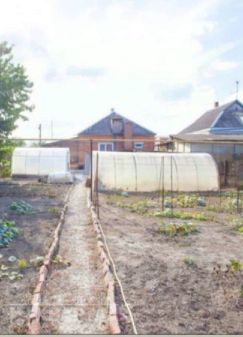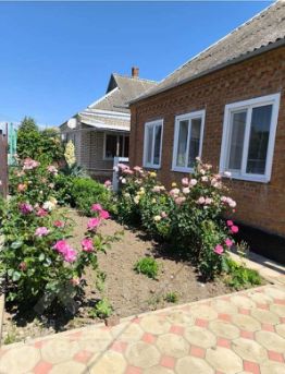 Уютный домик белого цвета с бирюзовой крышей. В доме 5 комнат, без ремонта, но можно прекрасно жить, мебель оставляем всю. Отдельно от дома есть кухня из двух комнат., где находится кухня и ванная., большой двор, а также гараж и сарай для хранения овощей и фруктов. Во дворе можно поставить 3 -4 машины. хороший ухоженный огород -4 сотки, растет малина, инжир, яблоня, персик, груша, виноград. есть старая теплица, при желании можно восстановить. Для семьи этого огорода вполне хватает, чтобы прокормиться. Дом уютный , можно жить без ремонта, а можно жить и делать ремонт .Можно дом достроить и перестроить, место и площадь позволяют. Торг