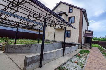 Дом с центральными коммуникациями: свет, вода, канализация, газ. Участок 8 соток.Расположен в поселке Супсех, в ближайшем пригороде Анапы, на ровном участке с асфальтированным подъездом.Общая площадь дома — 174 кв.м, плюс терраса 30 кв.м на всю ширину дома. Под террасой — сухое подвальное помещение. Крыша — мягкая кровля. В данный момент ведутся работы по установке навеса над террасой и навеса для автомобиля, а также благоустройство двора.Комфортная планировка: 1-й этаж: прихожая, котельная, кухня-гостиная с выходом на крытую террасу, спальня, санузел. 2-й этаж: три раздельных спальни, санузел, одна из спален с личным санузлом и гардеробной.В доме выполнена предчистовая отделка. В прихожей, санузле и кухне-гостиной — теплые водяные полы.Преимущества: Большой участок, асфальтированный подъезд, центральные коммуникации. Мягкая кровля, установлены навесы на террасе и для автомобиля. Развита инфраструктура: школа, детский сад, магазины, остановки — в шаговой доступности.Также имеется дизайн-проект ремонта с расстановкой мебели.