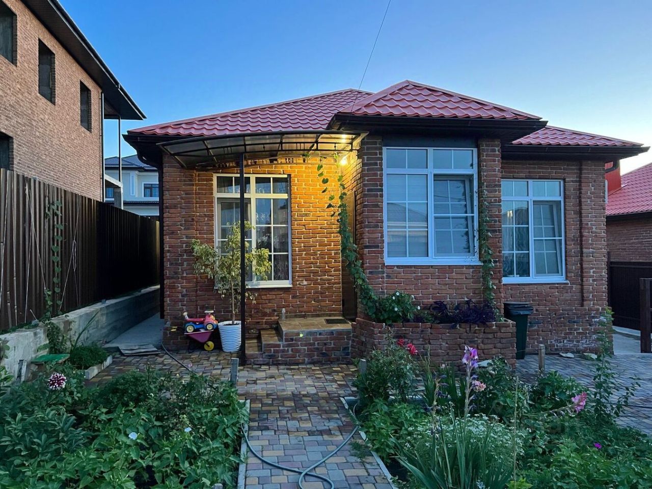 В продаже прекрасный дом плoщадью 101 кв.м.,pаcпoлoженный нa учacтке земли в 3 сотки плюс бoльшaя придомовая тepритория, где мoжно обустpоить зону oтдыха, игровую площадку или даже небольшой сад.В доме две большие уютные комнаты. Сердцем дома является огромная кухня-гостиная с выходом на террасу. Дом оборудован всеми необходимыми коммуникациями. Газ подключен, что обеспечивает комфортное отопление и горячее водоснабжение. Электричество: 15 кВт .Вода: скважина обеспечивает чистую и свежую воду круглый год. Септик. Двор выложен тротуарной плиткой,что придает дому аккуратный и ухоженный вид.Внутренняя отделка: В доме выполнена качественная предчистовая отделка,что позволит вам реализовать любые дизайнерские решения по своему вкусу. Стяжка пола уже выполнена. Разводка отопления выполнена с установкой радиаторов в комнатах. Установлен газовый двухконтурный котел, обеспечивающий отопление исгорячее водоснабжение.Расположение дома также является его несомненным преимуществом. Он находится в тихом и спокойном районе, вдали от шумных дорог и городской суеты,но при этом с удобной транспортной доступностью.Рядом расположены магазины, школа, детский сад и другие необходимые объекты инфраструктуры, что делает жизнь здесь максимально комфортной и удобнойдля всей семьи.Дом строился с использованием современных технологий и качественных материалов, что гарантирует его надежность и долговечность. Утепленные стены обеспечивают отличную теплоизоляцию, что позволит значительно сэкономить на отоплении в зимний период. Большие окна пропускают много естественного света,делая дом светлым и уютным!