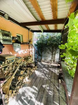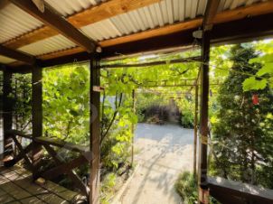 Объект 161175. Продается дом площадью 41 м2 на земельном участке 6 сот в СНТ ''Здоровье'' !Фундамент монолитный железобетонный, рассчитан на 3 этажа. Размер фундамента 8,5х10 м. Половину занимает одноэтажный дом с комнатой 26 м2 и кухней 15 м2. На второй половине - санузел, коридор и открытая с 2х сторон терраса. Стены из керамзитовых блоков толщиной 200 мм с наружными утеплением 50 мм и штукатуркой. Дом выполнен с учетом сейсмостойкости с колоннами и армированным поясом по верху стен. Крыша 2-х скатная из металлопрофиля. Утепление пола и потолка выполнено толщиной 200 мм. Полы, перекрытие, покрытие и конструкции крыши и веранды - из дерева, обработанного антисептиком. В санузле находится туалет, раковина, душ, водонагреватель . Коммуникации: скважина глубиной 60 м, септик из 2-х колец 1,0 х1,2м, электричество 5 кВт.В доме есть буржуйка последней модификации с улучшенной отдачей тепла +обогреватель. Выполнено межевание земли, участок 6 соток (фасад участка 15 метров), по факту 8 соток. Можно пользоваться, есть выход (калитка) в лес. На участке высажены фруктовые деревья и кустарники: 4 яблони, 3 персика, 2 черешни, 2черевишни, 2 груши, 3сливы, инжир, шелковица, чёрная смородина 2куста, крыжовник 3 куста, клубника, малина, ежевика и виноград. Есть новая теплица из поликарбоната.