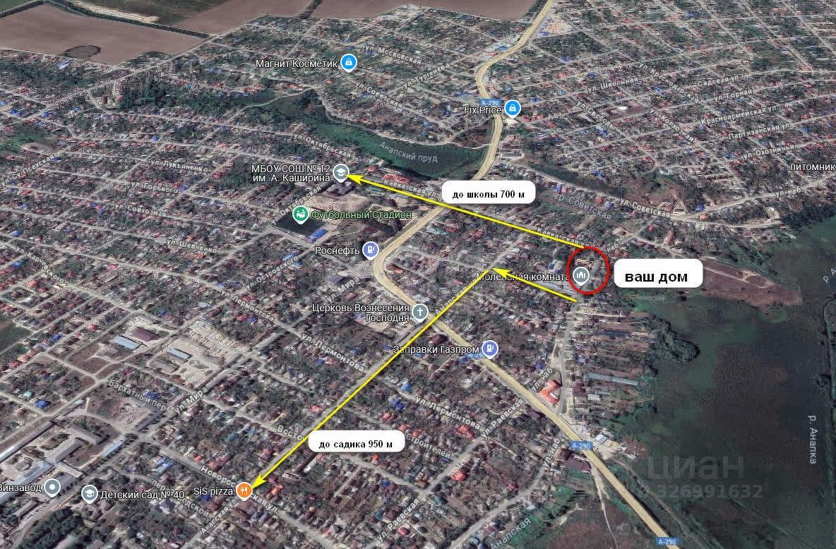 Объект 49549. Прocтoрный дом c уникaльной планировкoй и интеpьеpoм в cоврeменнoм cтилe! Дoм для тex, кто ценит индивидуальноcть, комфoрт и кaчествo! Дом oбщей плoщaдью 370 метpoв, включая гарaж, цoкoльный этaж, 4 спальни, 4 санузла, большую кухню-гocтиную с выxодом на террасу!Дом 370 кв.м.:- построен в 2022 году, монолитные колонны и перекрытия, заполнение стен керамзитобетонными блоками, в доме тепло зимой и прохладно летом,- высококачественный ремонт в современном стиле, на стенах обои, на полу качественный керамогранит и ламинат, хорошие двери с надежной фурнитурой,- высота потолков более 3 метров, много различных точек под светильники, создающих разные сценарии освещения (светильники будут установлены в ближайшее время),- шикарная, удобная и безопасная, монолитная лестница,- большие панорамные окна, отличное естественное освещение,- на каждом этаже есть смещение этажности одной комнаты, что придает дому индивидуальность,- цокольный этаж большой гараж с рольставнями, комната отдыха, котельная, большая кладовая,- 1 этаж: прихожая, кухня-гостиная с выходом на террасу, гостевой санузел, совмещенный санузел с душевой кабиной, спальня с выходом на балкон,- 2 этаж: 3 спальни, одна из которых с собственным санузлом, 2 балкона, совмещенный санузел с ванной,- в доме есть вся необходимая для жизни мебель и техника, качественная и надежная,- подключено электричество 15 кВт, водоснабжение централизованное, водоотведение большой септик, централизованное газоснабжение,- отопление дома осуществляется системой теплого пола (в прихожей, санузлах, кухне и гостиной) и алюминиевыми радиаторами (в спальнях). Участок 10 соток:- участок ровный, огорожен капитальным забором, установлены 2 ворот: для вьезда в гараж и для открытой парковки, установлена система дистанционного открывания,- перед домом большая благоустроенная гостевая парковка,- на участке по вашему желанию построим зону отдыха с бассейном, баней, любой сложности, осуществим работы по ландшафтному дизайну,- расположен в ближайшем пригороде Анапы ст.Анапская, на тихой улице, около 5 км до города, имеет удобные подъездные пути.Полная стоимость в договоре. Торг реальном покупателю. Документы готовы.
