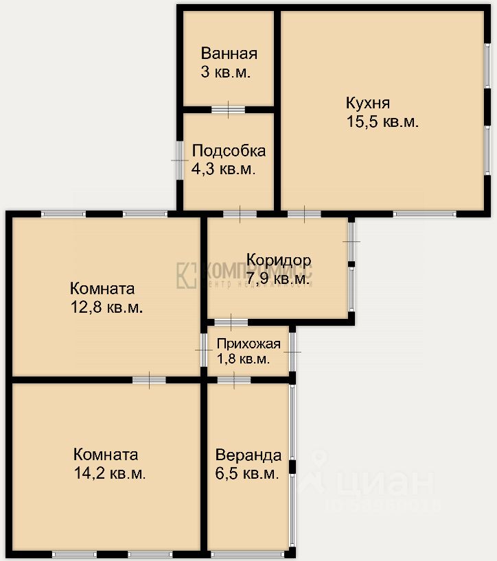 Дом 55 м² · 14.8 соток · 1 этаж