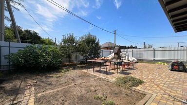 Продается новый дом в п. Южном. 101 кв.м. + большая терраса 17 кв.м. Дом 2019 года простройки, кирпичный, одноэтажный. В доме 3 жилых комнаты и большая кухня-гостиная с выходом на крытую навесом террасу. Под террасой просторный сухой подвал со скважиной, фильтрами и насосом. Дом летом прохладный, зимой очень теплый. В доме выполнен свежий ремонт, на кухне, в коридоре и санузле - теплые полы. Остается втроенная кухня с бытовой техникой, 3 сплитсистемы. Дом находится под видеонаблюдением - 4 камеры по периметру. О коммунакациях: газ (двухконтурный котел), свет, вода скважина (есть центральная), септик (есть центральная канализация, не подключали). Из преимуществ - за все время проживания в доме ни разу не было отключения электроэнергии, в то время, как в городе летом это было регулярно. О земле: 5 соток, ИЖС, участок ровной прямоугольной формы с хорошим фасадом. Есть крытый навесом въезд для 3 авто, автоматические ворота-роллеты на пульте. За домом есть небольшая мастерская для хранения инструмента и садового инвентаря. На участке залит фундамент с подведенными коммуникациями под баню. Двор застелен тротуарной плиткой. Посажен молодой сад - яблоня, сливы, груша, инжир, виноград, смородина, малина, клубника. Во дворе розы, елочки. О местоположении: Дом расположен в Центре поселка, в шаговой доступности от транспорта, магазинов, школы, детского сада. Напротив дома Магнит, почта, новый сквер с детскими площадками и спортивным городком с тренажерами, торговый центр с любой сферой социального обслуживания, пекарня, много маленьких магазинчиков со свежими фермерскими продуктами. Место не проезжее, тихое. Район очень зеленый и спокойный. По документам: Вся сумма в договоре, один взрослый собственник. Документы готовы к продаже.