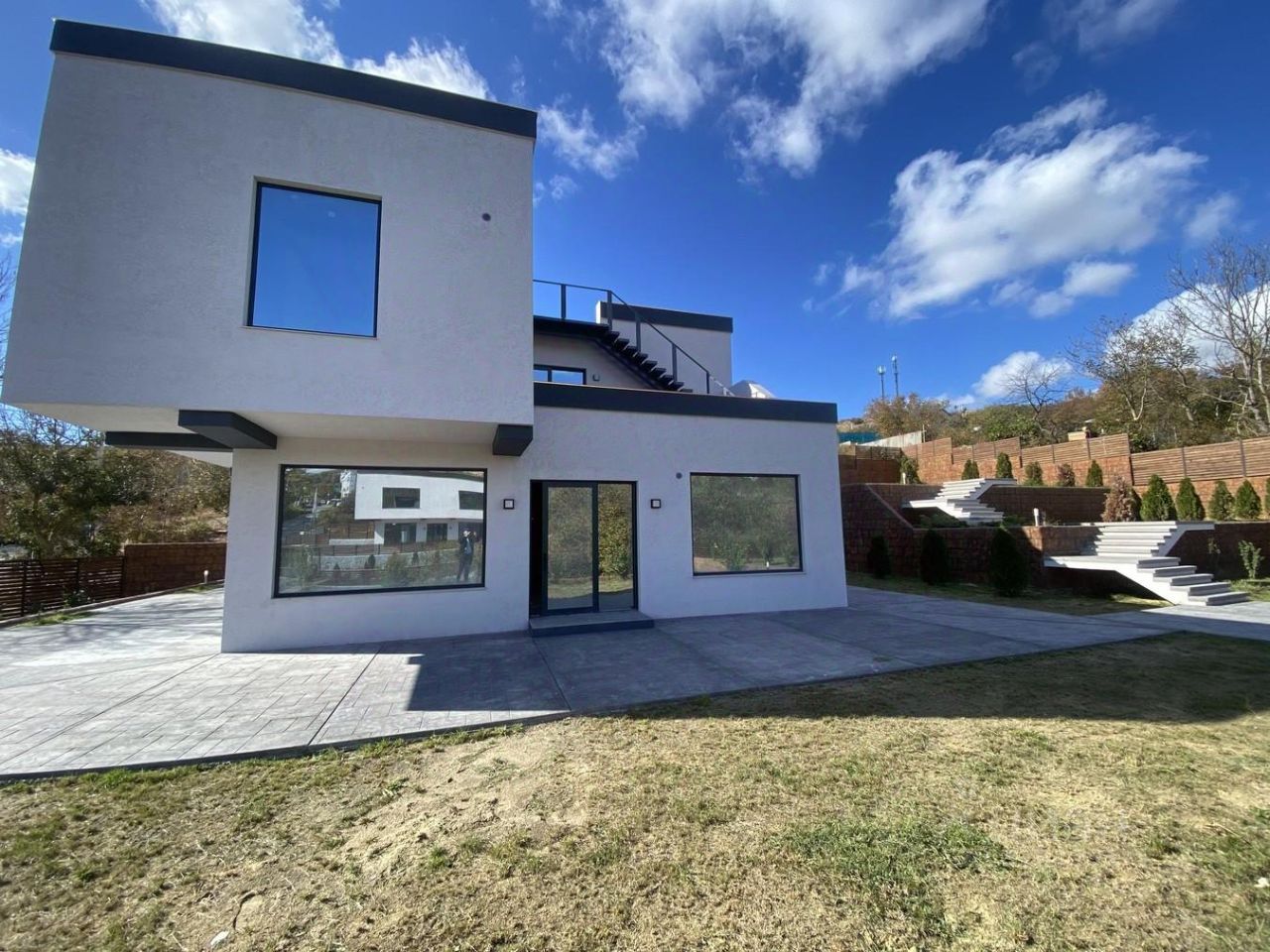 Объект 143553. В экологически чистом селе Варваровка продам коттедж в стиле хайтек. Таких домом в Варваровке нет и уже не будет! Этот дом воплощение красивой жизни на побережье. Современный стиль. Большая площадь остекления. Просторные комнаты. Терраса и выход на крышу где можно принимать солнечные ванны днем или наблюдать за звездами ночью в полном уединении. Также можно устраивать приемы гостей, тем более в шаговой доступности элитная винодельня Скалистый берег. Панорамный вид на море и Кавказские горы. Неповторимая природа Варваровки с ее поросшими можжевельником склонами, бесконечными виноградниками, речкой Шингарь и кристально чистым воздухом будет радовать вас каждый день.В доме 2 этажа. 4 комнат, одна на первом этаже и 3 спальни на втором. 2 санузла. 13 огромных панорамных окон с зеркальной тонировкой для максимальной приватности проживания. Естественно дом построен в полном соответствии с проектной документацией. Продуманная планировка и все инженерные решения электричества, водоснабжения, систем вентиляции. На участке выполнен авторский каскадный ландшафт. Произведено озеленение и система полива. Уже высаживаются кипарис, туя, фотиния, можжевельник, дейция и другие растения. Дизайнерское оформление ступеней. Дорожки на участке -печатный бетон. Красивое исполнение подпорных стенок. Светодиодная подсветка всего дома по периметру. Предусмотрен гараж для двух авто.Дом продается в предчистовой отделке, что позволяет будущим владельцам реализовать свои индивидуальные пожелания в интерьере. Назначение земель ИЖС. В пределах 5-10 минут находятся галечные чистые пляжи Шингари, Сукко, Утриш. До центра анапы всего 10 км..
