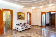 Продается дом премиум-класса общей площадью 1500 кв.м на охраняемой территории в 30 соток в центре города. Основное здание в три этажа с цоколем демонстрирует безупречное качество строительства и отделки: стены толщиной 640 мм, гранит, мрамор, дубовый паркет. Высота потолков 3,2 метра создает ощущение простора. Планировка включает пять изолированных спален с индивидуальными ванными комнатами и гардеробными, кабинет с душевой, а также просторную гостиную и кухню-столовую с панорамным остеклением и выходом на балкон. Инженерное оснащение соответствует высшим стандартам: система ''Умный дом'', лифт немецкого производства, теплые полы на первом этаже, принудительная вентиляция.Цокольный уровень представляет собой масштабную рекреационную зону с бассейном с подогревом, СПА-комплексом, включающим сауну и хаммам из оникса, тренажерным залом и зоной отдыха с собственной кухней. Инфраструктура участка полностью автономна и включает гостевой дом, дом для персонала и охраны, а также гараж на 188 кв.м. Техническое обеспечение реализовано с многократным запасом: резервное электропитание от дизель-генератора и ИБП, котельная с двумя котлами (газовый и дизельный), многоступенчатая система очистки воды. Для комфортного проживания обустроен отапливаемый вольер для собак с душем и кондиционером, а на территории разбиты ландшафтные зоны с хвойными и фруктовыми деревьями, газонами и системой автоматического полива. Все документы подготовлены для совершения сделки.. Дополнительно оплачивается комиссия с покупателя.Код пользователя: 84997Номер в базе: 9638394