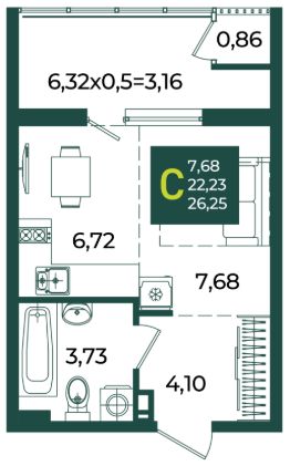 26 м2