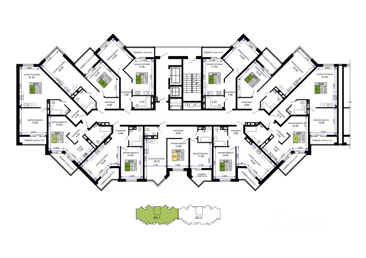 44 м² · Этаж 17 из 24