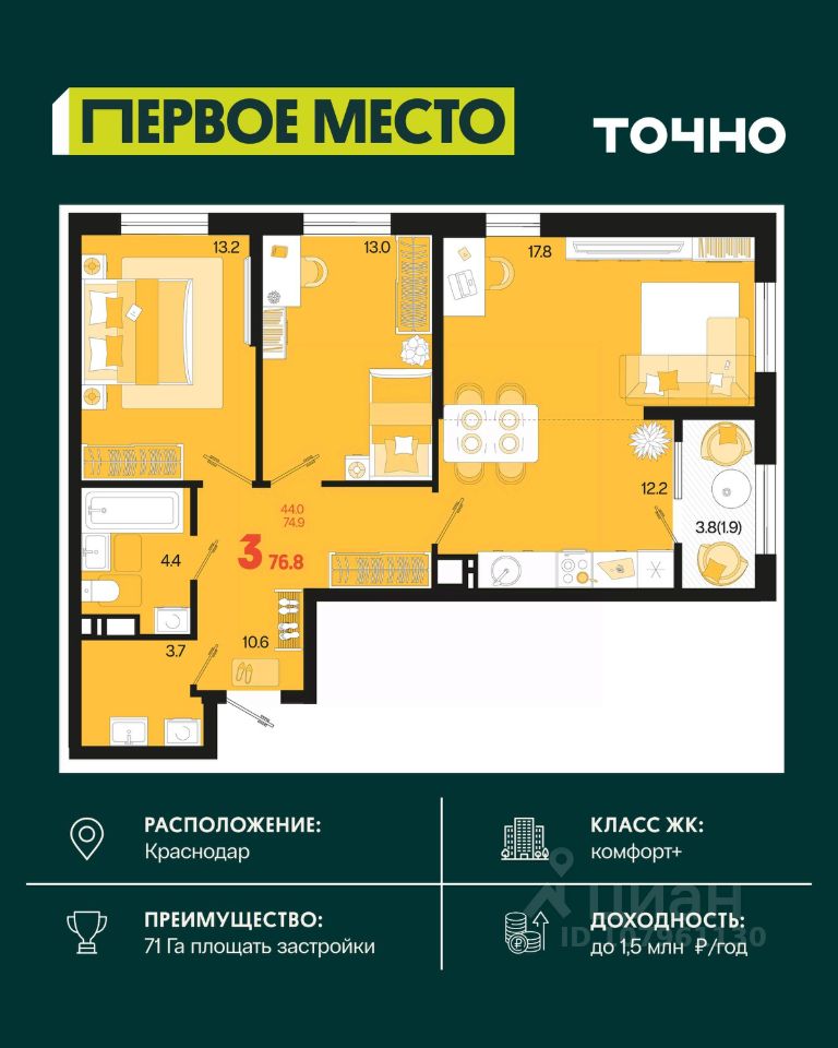 76 м² · Этаж 16 из 18