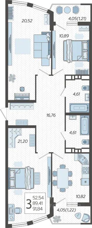 91 м² · Этаж 3 из 21