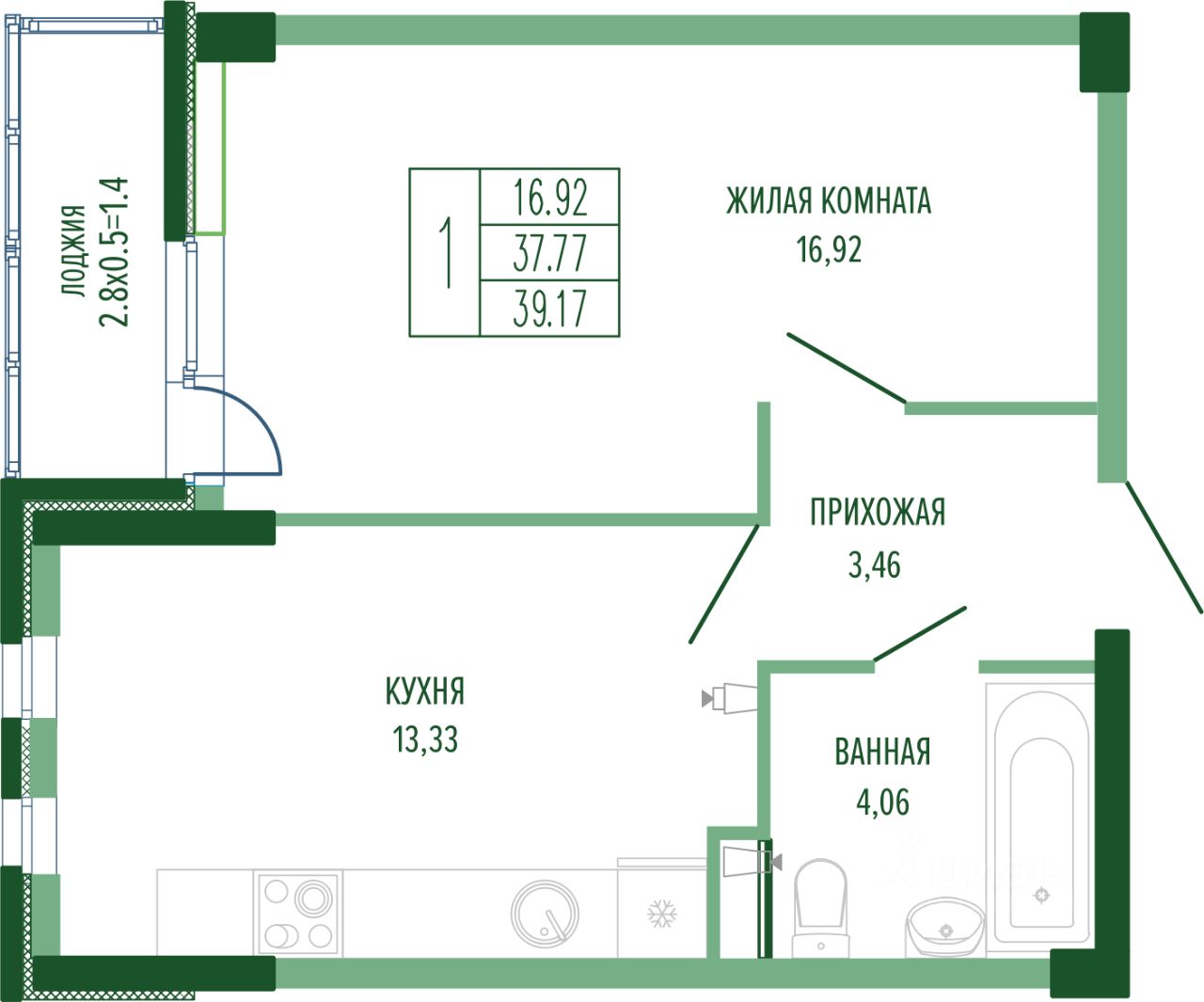 39 м² · Этаж 1 из 4