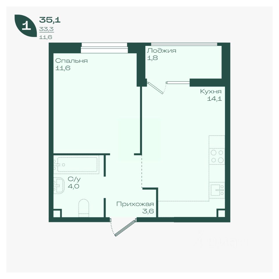 33 м² · Этаж 12 из 18