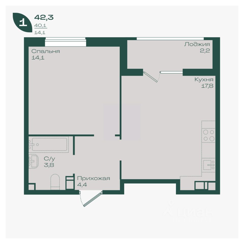 42 м² · Этаж 6 из 18