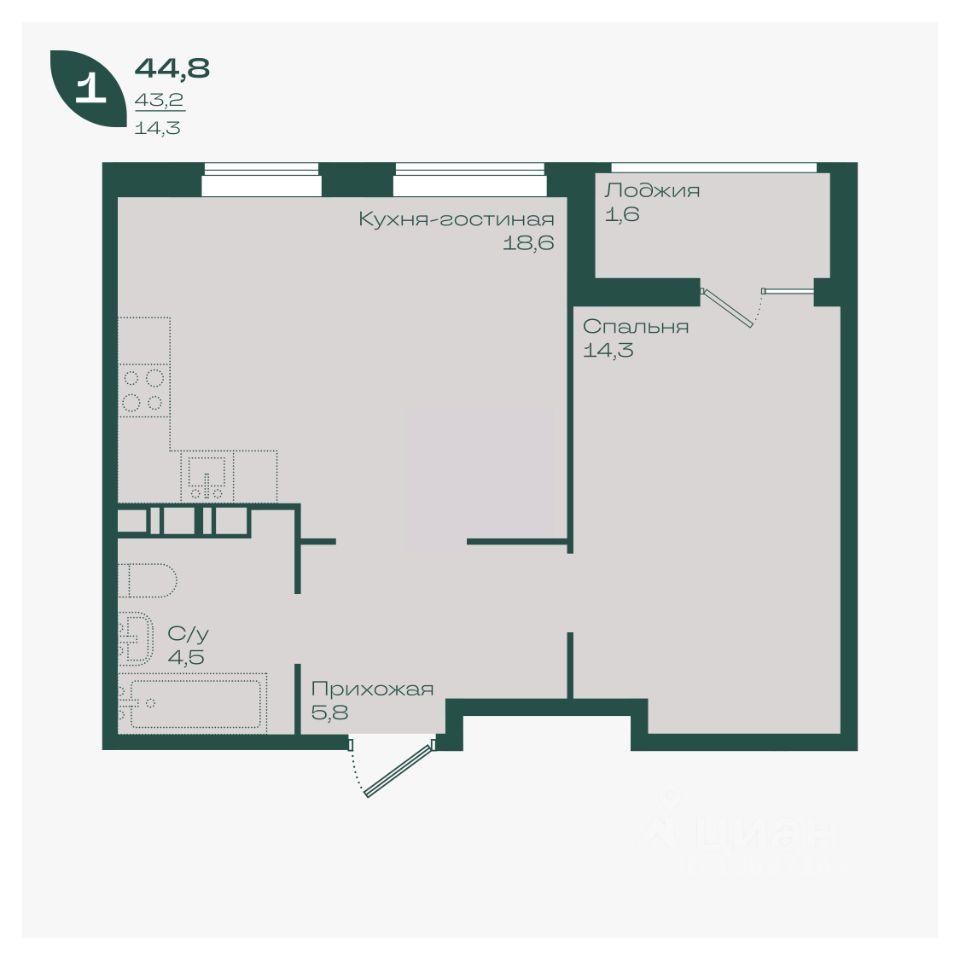 43 м² · Этаж 5 из 18