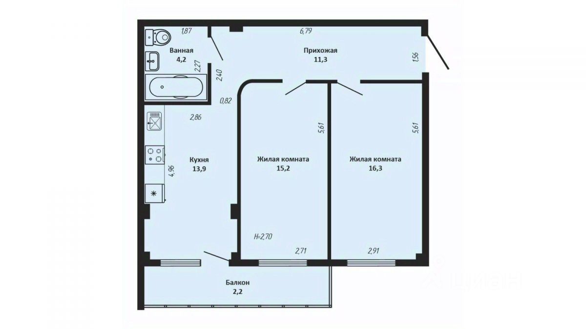 70 м² · Этаж 2 из 16