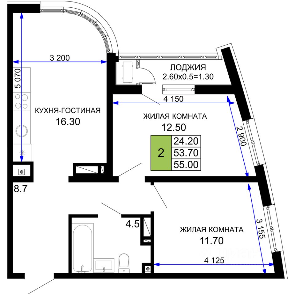 55 м² · Этаж 7 из 18