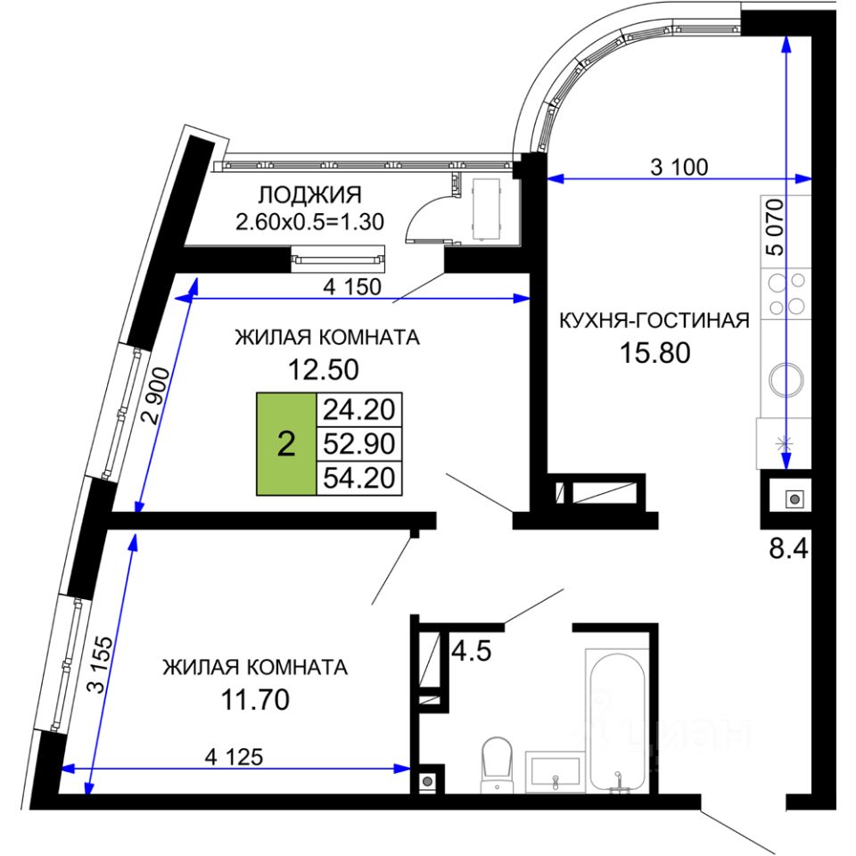 54 м² · Этаж 6 из 18