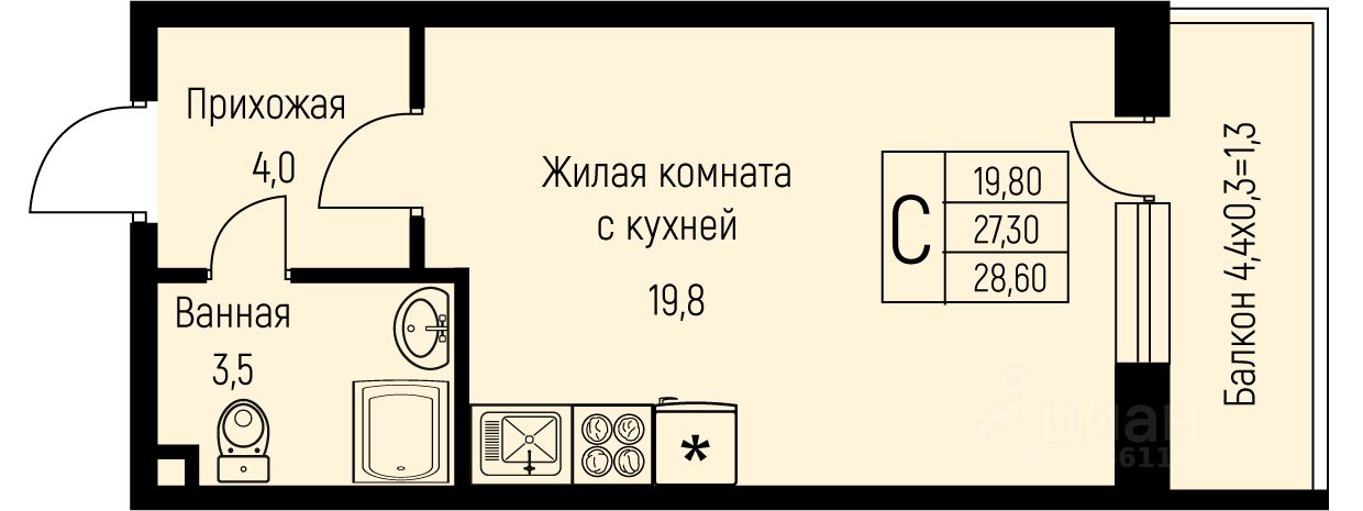 28 м² · Этаж 1 из 3