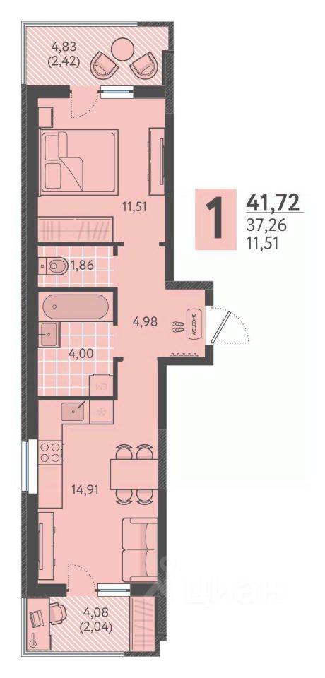 41 м² · Этаж 4 из 18