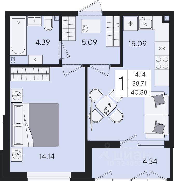 39 м² · Этаж 14 из 18