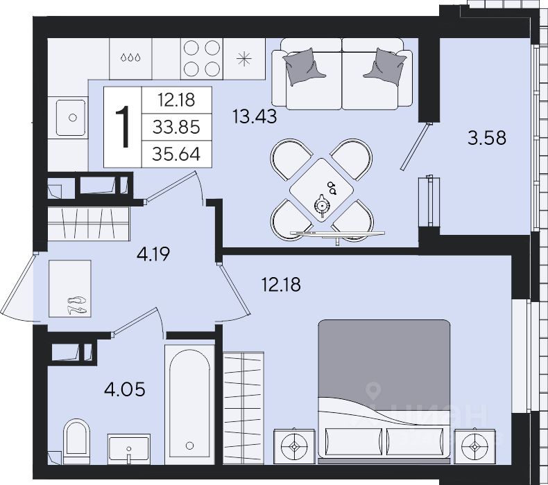 22 м² · Этаж 12 из 18