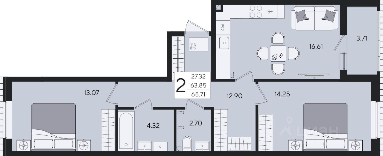 65 м² · Этаж 2 из 9