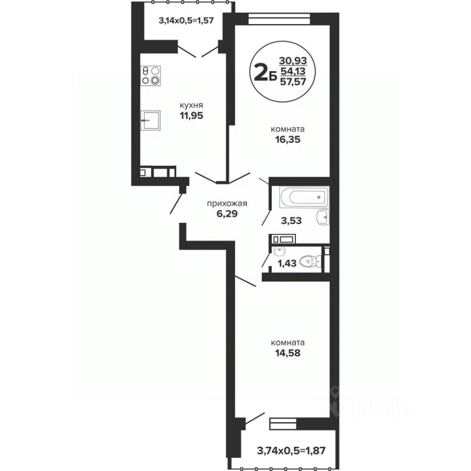 58 м² · Этаж 12 из 24