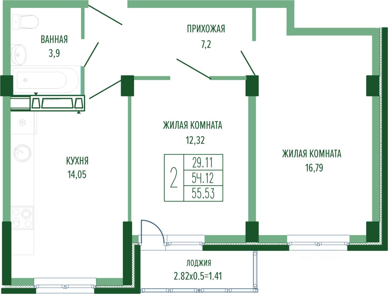 56 м² · Этаж 9 из 24