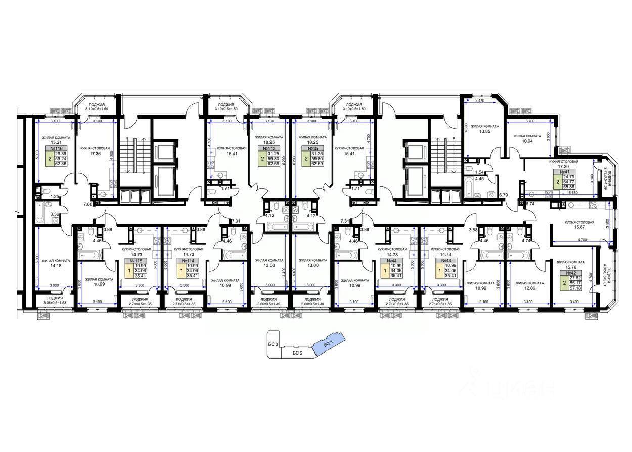 62 м² · Этаж 11 из 18