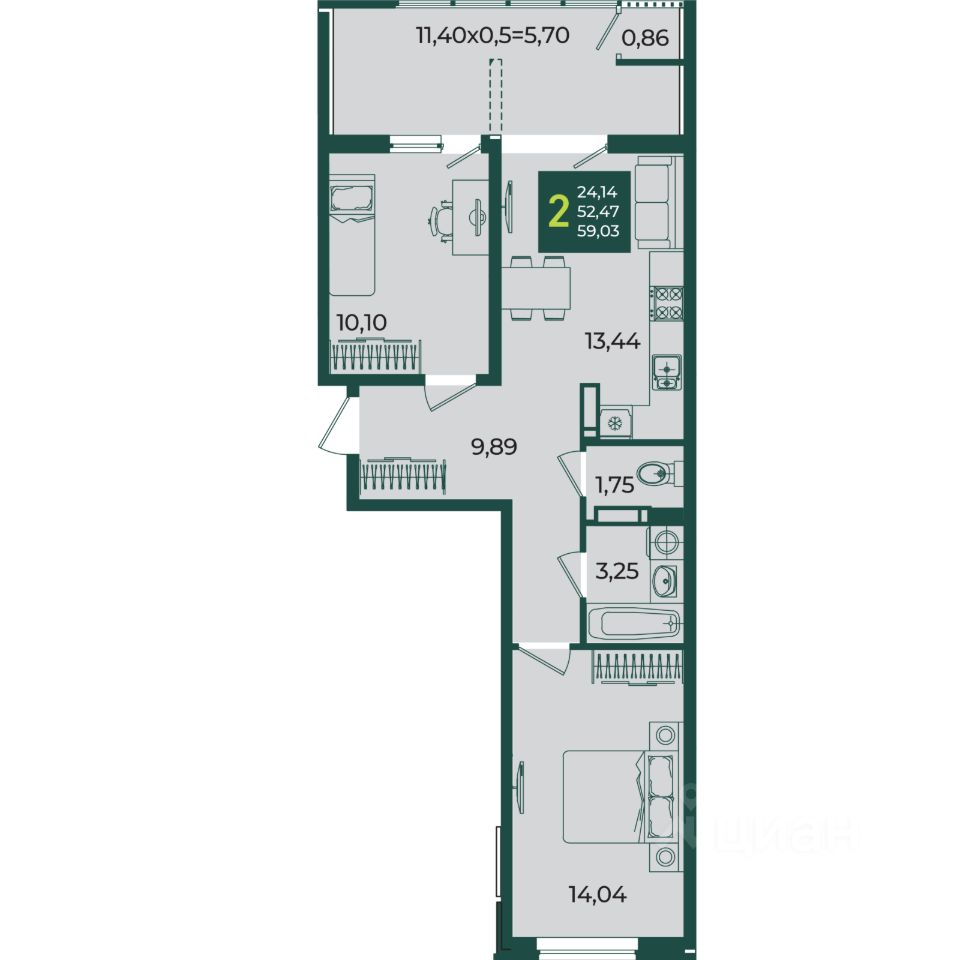 40 м2