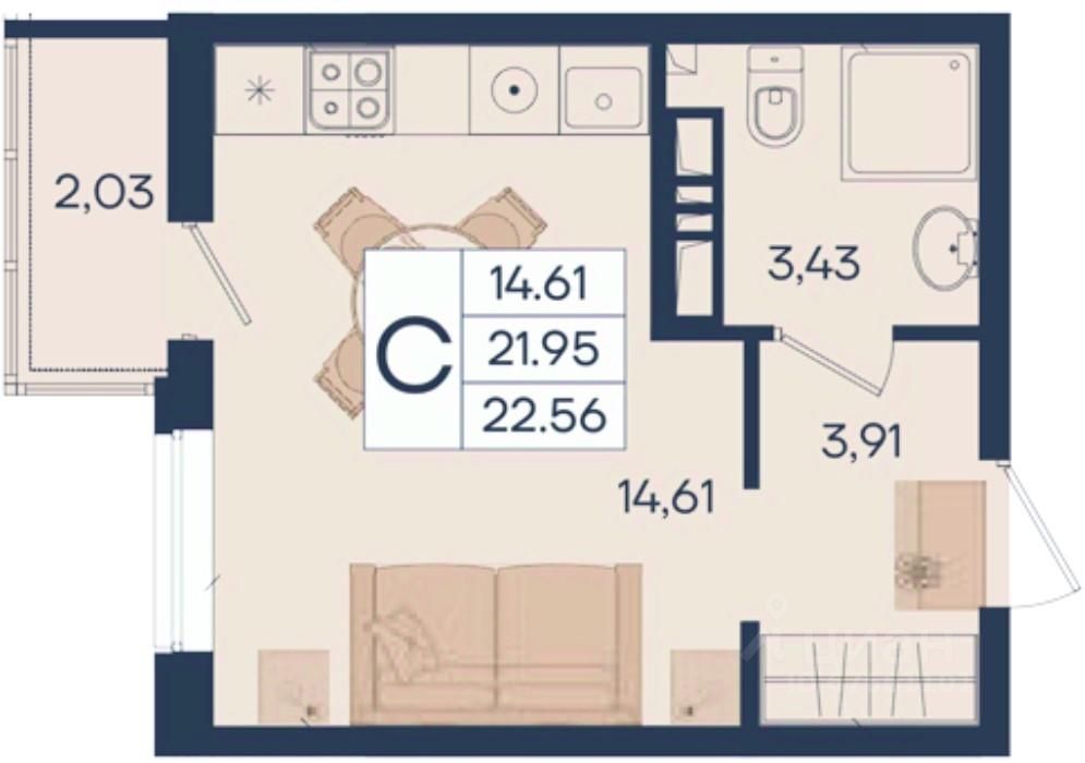 22 м² · Этаж 5 из 18