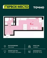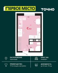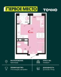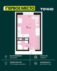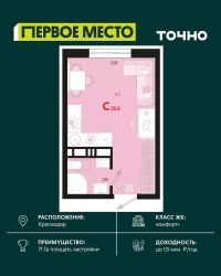 Продается студия площадью 27.46 кв. м. на 9 этаже 18 этажного дома, 2 подъезд, номер 314. Стоимость данного лота включает в себя ремонт, мебель и технику. Будут представлены 3 варианта обустройства квартиры: светлый, тонированный и авторский. Для более подробного ознакомления вы можете обратиться в отдел продаж. Жилой комплекс ''ИНАЧЕ в Молодежном'' включает в себя 14 домов комфорт+ класса переменной этажности с более чем 100 видами планировок, в том числе квартиры с террасами, двухуровневые квартиры и урбан виллы, детский сад на 350 мест, храм, 2 наземных паркинга, а также бульвар и прогулочные аллеи. Срок сдачи первой очереди 4 квартал 2026 года Жилой комплекс находится в Молодежном — тихом микрорайоне с атмосферой размеренной жизни. Рядом расположен зеленый сквер ''Изумрудный'' с зелеными деревьями и велодорожками. Молодежный — молодой район с готовой инфраструктурой. Всю бытовую и семейную можно легко организовать на расстоянии 10 минут от дома. Есть новая школа, два детских сада, поликлиника, работают магазины, аптеки и салоны красоты. Жилой комплекс расположен рядом с удобными выездами на ключевые городские дороги. Можно быстро доехать как в центр города, так и до моря по Ейскому шоссе. Главные чувства от прогулки по нашему району простота и легкость. Архитектуру мы проработали совместно с архитектурным бюро Маликова и создали район с современным лаконичным обликом. При этом мы учли сценарии жизни людей и современные тренды. В наших домах будут разноэтажные секции. Французские балконы и увеличенные окна. На фасадах не будет визуального шума: кондиционеры будут скрыты с специальных корзинах. По всей территории продумана безбарьерная сеть тротуаров и переходов. Любое перемещение — пешком или с коляской — станет комфортным. - На территории комплекса будут расположены детские и спортивные площадки, а также амфитеатр, арт-объект и храм. - 40% территории занимает озеленение с более чем 50 видами растений. - Хранить автомобиль с комфортом и беречь его от осадков помогут два наземных многоуровневых паркинга. Кроме крытых паркингов, на территории есть открытые — в достаточном числе для жителей и гостей района. - Проект включает в себя строительство современного детского сада и так же в пешей доступности находятся 2 школы. - На первых этажах мы создадим коммерческие помещения с планировками, которые помогают бизнесу. Умный проект коммерции включает удобные входные группы, высокие потолки и панорамные окна, приглашающие заглянуть внутрь. - Эстетика холла продолжает природную идею района. Дизайнерские холлы выполненные в натуральных цветах с живыми деревьями включают в себя места для ожидания, встреч, санузлы, колясочные и постаматы. - Система аудиомультирум в каждой квартир - распределение аудио- и видео-сигналов по всей квартире. Для более подробного ознакомления вы можете обратиться в отдел продаж.