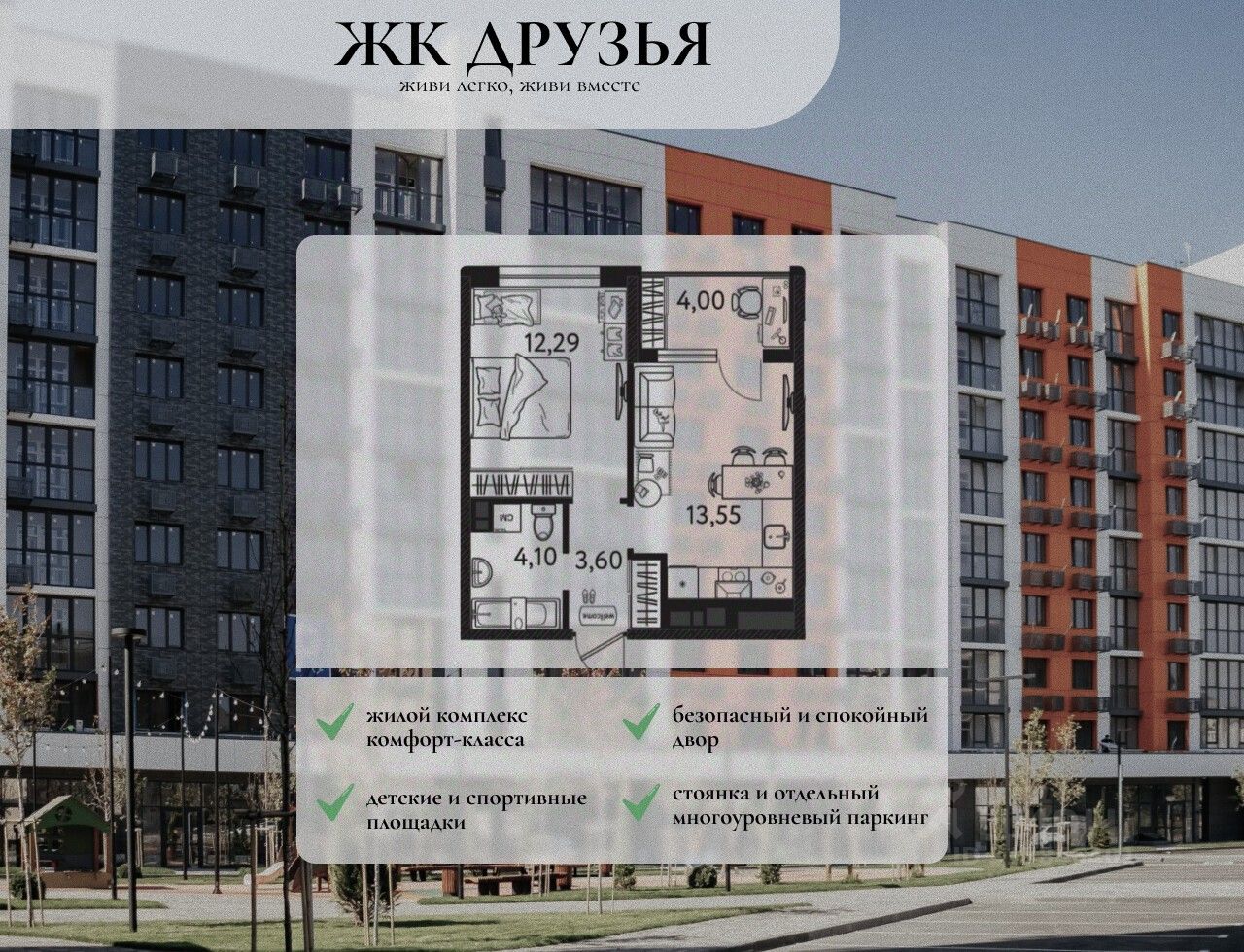 Уникальное предложение в жилом комплексе ''Репин Парк''! Комплекс расположен всего в 10 минутах от центра Краснодара, в Фестивальном микрорайоне. Строгое соблюдение сроков и высокое качество строительства - главные преимущества ''Репин Парк''. Современные технологии и материалы обеспечивают надежность и экологичность зданий. Монолитный железобетон и трехслойные наружные стены обеспечивают прочность и сохраняют тепло. Переменная этажность комплекса от 9 до 18 этажей позволяет получить больше солнечного света для всех уровней квартир с внутренней стороны. Площадь придомовой территории будет оформлена зелеными насаждениями, создавая приватное пространство для отдыха, детских игр и семейного досуга. Во дворе также будут пространства для занятий спортом и воркаутом. Парковка будет предусмотрена на подземном уровне с двухуровневым паркингом для жителей и гостевыми машиноместами. Квартира сдается с уже завершенными черновыми работами, включая коммуникации, стяжку пола, разводку электросетей и теплоснабжения, остекление окон и балконов, установку радиаторов и входных дверей. В ЖК также предусмотрены индивидуальные кладовые помещения. Благодаря удобному расположению, жители ''Репин Парк'' могут наслаждаться пешей доступностью к крупным сетевым магазинам, фитнес-клубам, школам, детским садам, кафе, ресторанам и остановкам общественного транспорта. Удобная транспортная развязка обеспечивает простой доступ и избавляет от пробок. ''Репин Парк'' предлагает комфортное расположение, полный спектр социальных и инфраструктурных объектов, современные технологии и уютную атмосферу. Качество, комфорт и доступность - вот то, что делает ''Репин Парк'' особенным. Звоните нам прямо сейчас! Успейте купить свою счастливую квартиру!
