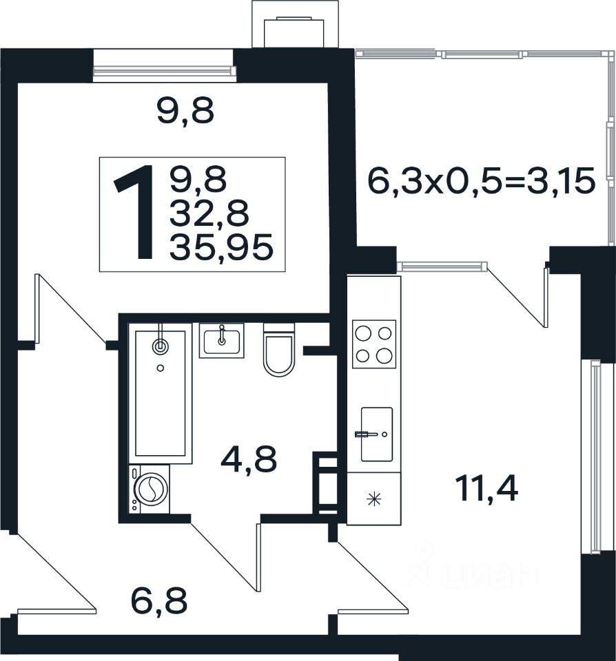 22 м² · Этаж 6 из 9