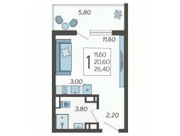 1-к, Виктора Казанцева, 1.6 Показать на карте