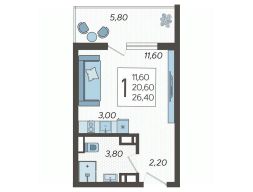 1-к, Горный Квартал ЖК Показать на карте