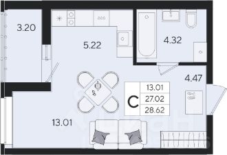 • Минимальная площадь: 13 м²