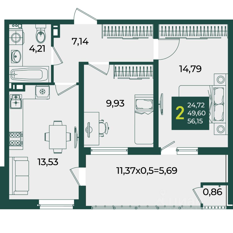 57 м² · Этаж 14 из 18