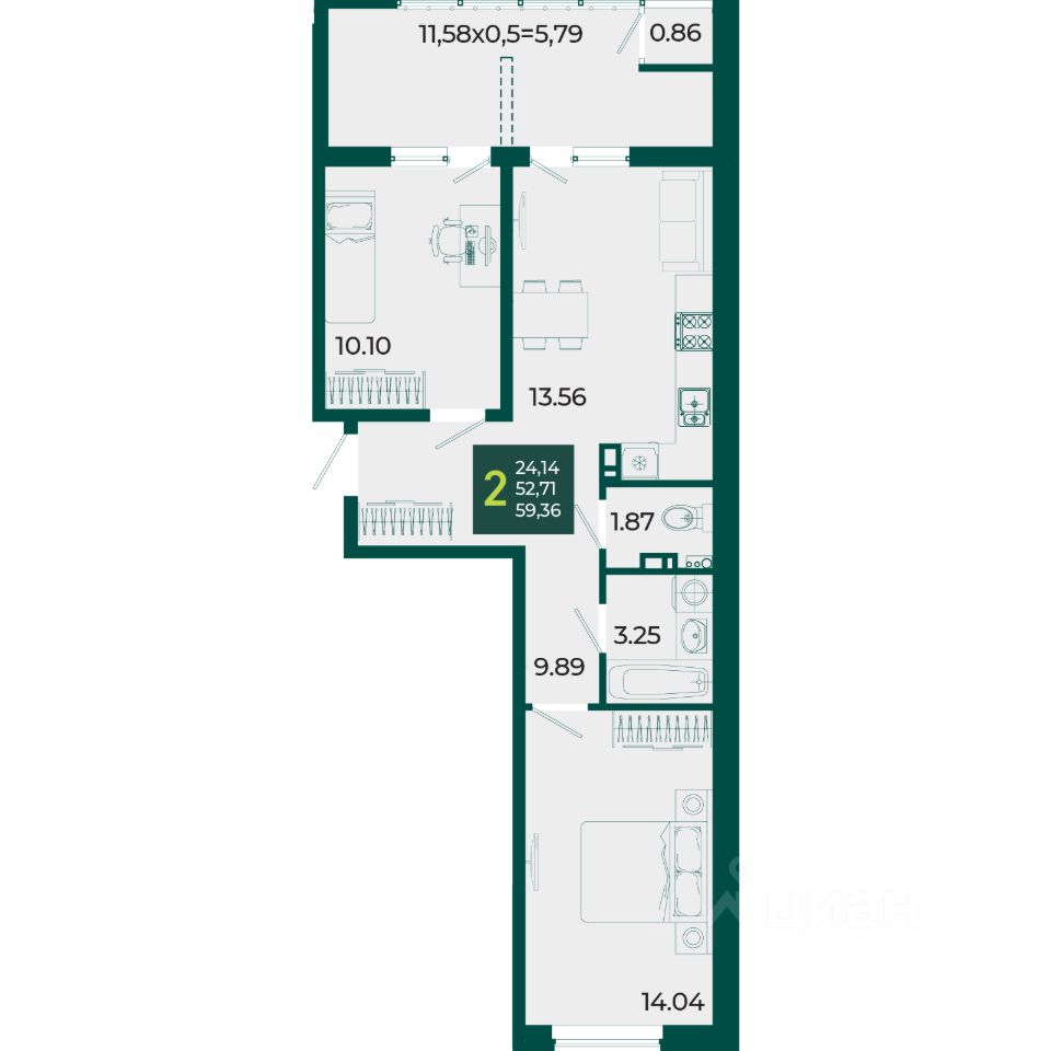 59 м² · Этаж 7 из 18
