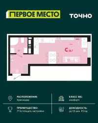 Жилой район ''Первое место''- один из самых масштабных проектов в России. На территории 71 га 18 кварталов, 31 дом переменной этажности от 8 до 18 этажей, собственный парк 9 га, храмовый комплекс, пешеходный бульвар ''Круг семьи'', детские и спортивные площадки, мангальные зоны и различные локации для отдыха. В шаговой доступности действующие муниципальные образовательные учреждения: школа на 1 100 мест и детский сад на 250 мест. Помимо этого, в жилом районе ''Первое место'' построятся школа на 1700 мест с крытым 25-метровым бассейном и 5 детских садов на 1 490 мест. На первых этажах многоуровневых парковок ''паркхабов'' разместится более 61 тыс м2 коммерческих помещений. Жителям будут доступны собственный фитнес-центр, кафе, рестораны и магазины. В каждом подъезде предусмотрены дизайнерские холлы в стиле лобби отелей, консьерж-сервис, лапомойки, отдельные колясочные и велосипедные. Также в домах будут просторные кладовые помещения и комнаты для хранения почты с почтоматами для получения посылок из маркетплейсов.