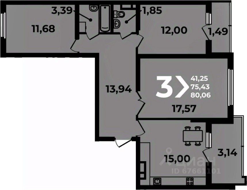 75 м² · Этаж 3 из 16