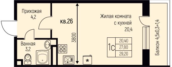 Продаётся студия в строящемся доме (Литер 10), срок сдачи: II-кв. 2026, общей площадью 26.04 кв.м., на 19 этаже. Расположение, транспортная доступность Жилой квартал ''Славянка'' из десяти 16- и 21-этажных домов и 5-уровневого наземного паркинга с земельным участком 8 гектар расположен в молодом Славянском районе на северо-западе Краснодара. В ста метрах проходит улица Красных Партизан, по которой можно быстро доехать в центр города или соседние районы, а в километре улица Западный обход, открывающая дорогу на трассу Р-268 (на север в сторону Тимашевска) или на северо-запад к Азовскому морю и в Крым. В пешей доступности расположены Академический сквер и Ботанический сад. Инфраструктура Цокольные этажи корпусов отданы под коммерческие помещения, где будут открываться магазины, офисы сервисных служб, компаний сферы услуг и пр. объекты инфраструктуры. Около домов комплекса расположены супермаркеты ''Пятерочка'' и ''Магнит'', аптека. В радиусе двух километров можно найти два детских сада, две общеобразовательных школы (16 и 63), школу-интернат 3, гипермаркет ''Лента'', оздоровительный центр ''Аквалига'', отделение почты и банка, торговый центр с кинотеатром, городскую больницу и Микрохирургию глаза им.Федорова. В шаговой доступности открыты фитнес-клубы KingFit и ''Европа Фитнес''. Район молодой, инфраструктура развивается по мере появления новых жилых комплексов. Рядом останавливаются автобусы, на которых можно доехать до школы 45 и 90, детской школы искусств, торгового комплекса ''Галерея Краснодар'', рынка и ТРЦ ''Мега Адыгея-Кубань'' с гипермаркетами Ашан, Леруа Мерлен, Metro, Спортмастер и М.Видео. Надежность застройщика ООО ''КубаньГрадИнвестСтрой'' было создано в 2012 году, хотя компания имеет опыт работы на строительном рынке Краснодара с 2006 года. Застройщик довольно быстро завоевал положительную репутацию. Среди очевидных преимуществ компании по сравнению с конкурентами: земельные участки на всех объектах оформлены в собственность, кредитные средства на строительство не привлекаются (только свои ресурсы и инвестиции дольщиков), используется монолитно-кирпичная технология домостроения. Кроме того, предлагаются гибкие условия покупки (материнский капитал, ипотека от нескольких банков, беспроцентная рассрочка до трех месяцев) и скидки пенсионерам, врачам, учителям, многодетным семьям, студентам, инвалидам. Компания владеет строительной техникой и занимается производством бетона. Проект жилого комплекса ''Славянка'' начат в 2016 году, к этому времени были уже сданы в эксплуатацию ''Ставропольский'' и ''Парус''. Продажи оформляются по договорам ДДУ в соответствии с ФЗ-214. Архитектура В состав ЖК ''Славянка'', расположенного в селитебной зоне города на территории 8 га, входит десять 16-21-этажных корпусов на 4620 квартир и 5-уровневый наземный паркинг на 3200 машиномест. Представлены студии 25-28 кв. м, однокомнатные квартиры 33-36 кв. м и двухкомнатные 54-63 кв. м. Вместо балконов сделаны лоджии. В двухкомнатных раздельный санузел, в студиях и однокомнатных со